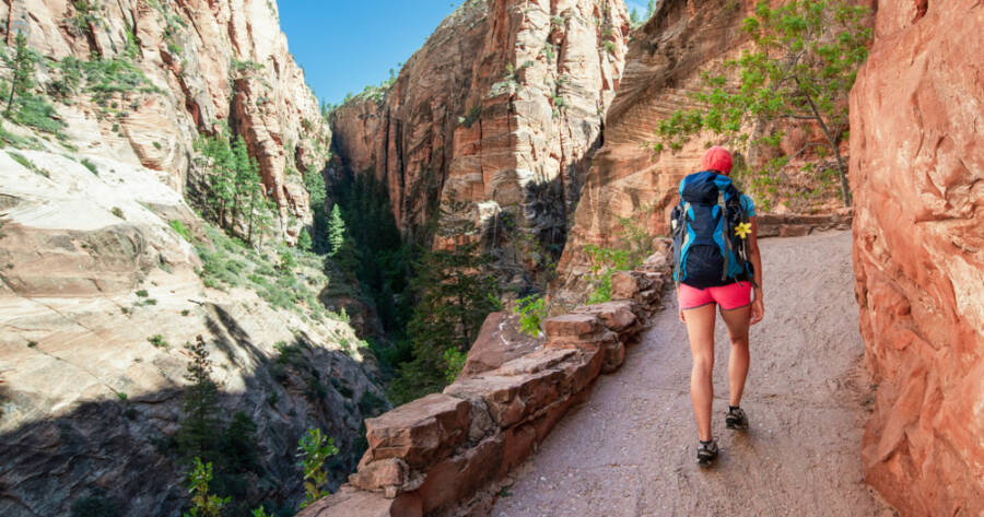 Angels Landing in Zion National Park is known for its dramatic cliffside views and narrow ridgeline ascent. The trail climbs steep switchbacks before reaching a section supported by chains anchored into rock. The route demands careful footing and comfort with heights, particularly along exposed segments.